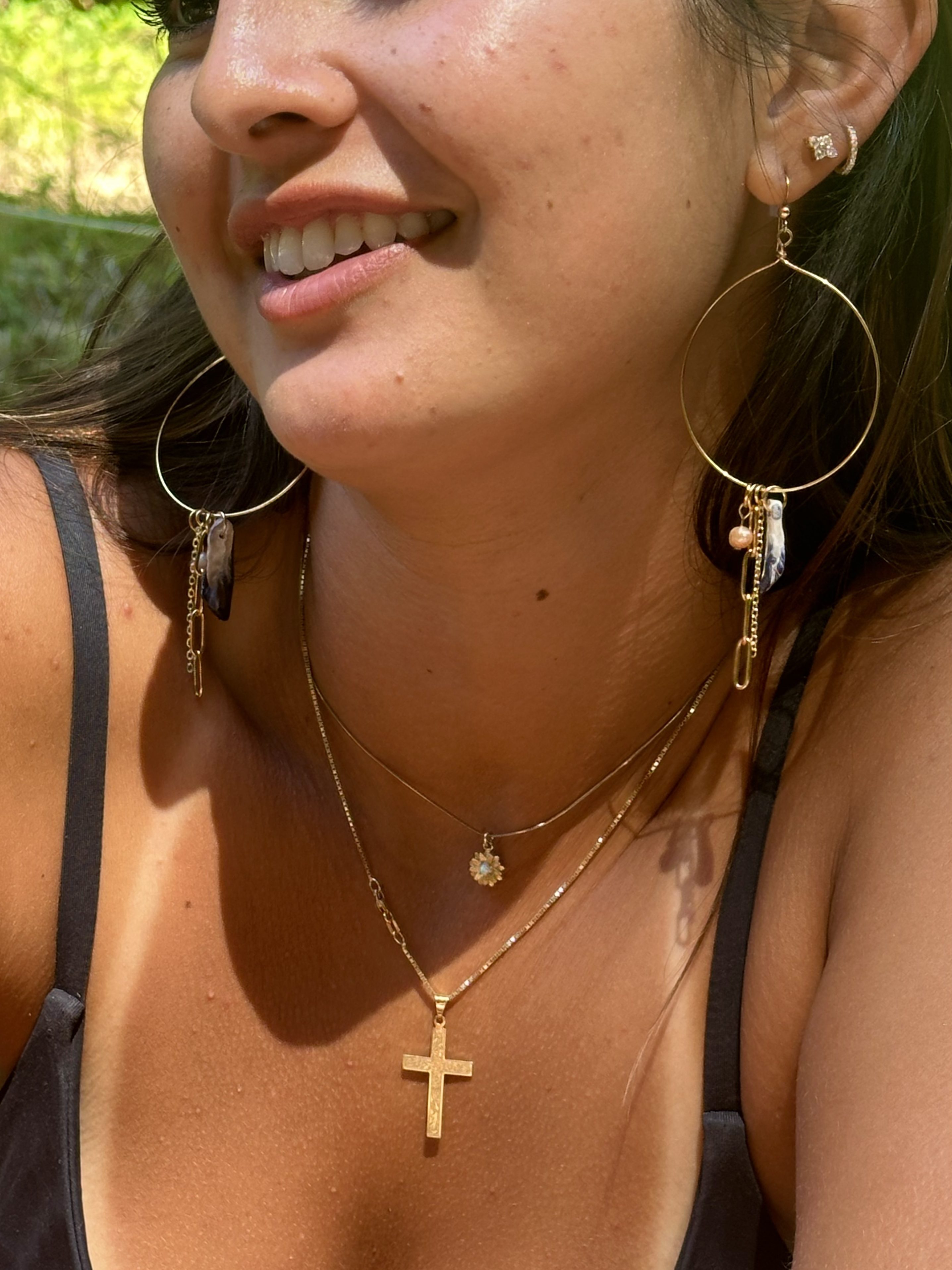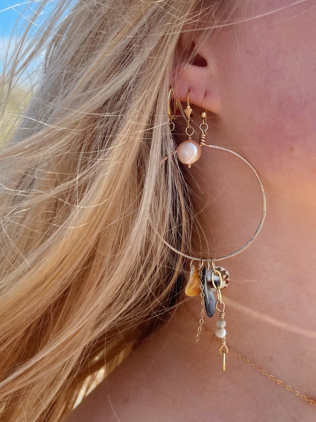 Pieces are made from shells collected from the Santa Cruz Pacific West Coast & 14k gold-filled materials, sustainably sourced from local and small businesses.